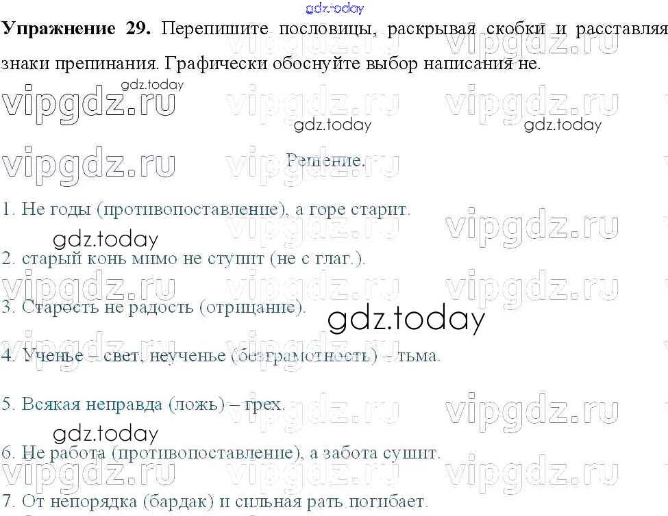 На страницах сайта gdz.today вы найдете учебный и вспомогательный материал, направленный на улучшения знаний школьной программы. ГДЗ - онлайн мир знаний Решение к упражнениям 29 Учебнику по Русскому языку для 8 класса Тростенцова, Ладыженская Просвещение 2014
