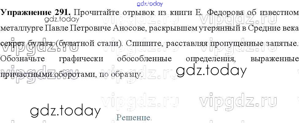 Ответы к Решение к упражнениям 291 Учебнику по Русскому языку для 8 класса Тростенцова, Ладыженская Просвещение 2014