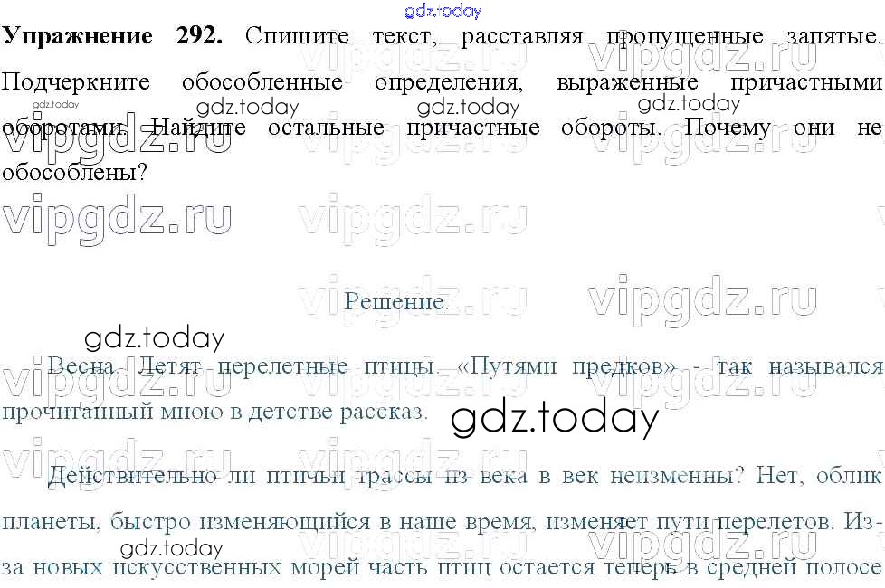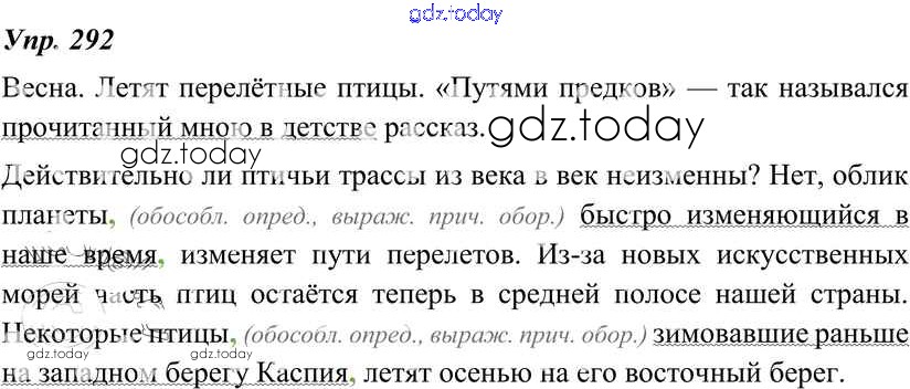 На страницах сайта gdz.today вы найдете учебный и вспомогательный материал, направленный на улучшения знаний школьной программы. ГДЗ - онлайн мир знаний Решение к упражнениям 292 Учебнику по Русскому языку для 8 класса Тростенцова, Ладыженская Просвещение 2014