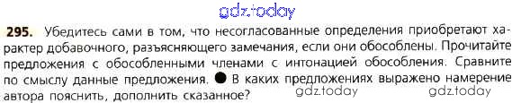 Ответы к Решение к упражнениям 295 Учебнику по Русскому языку для 8 класса Тростенцова, Ладыженская Просвещение 2014