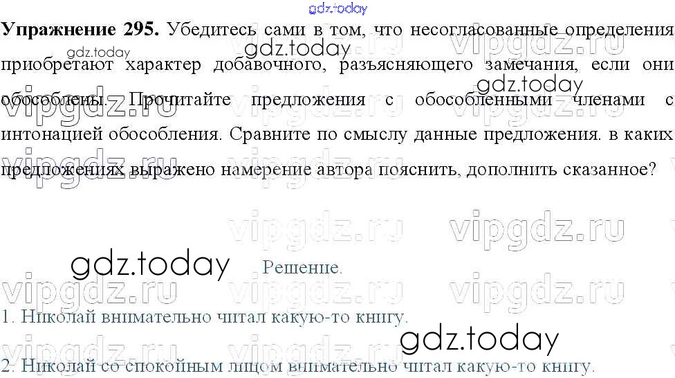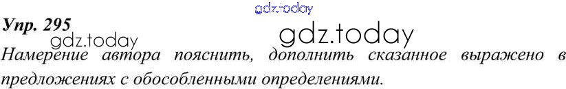 На страницах сайта gdz.today вы найдете учебный и вспомогательный материал, направленный на улучшения знаний школьной программы. ГДЗ - онлайн мир знаний Решение к упражнениям 295 Учебнику по Русскому языку для 8 класса Тростенцова, Ладыженская Просвещение 2014