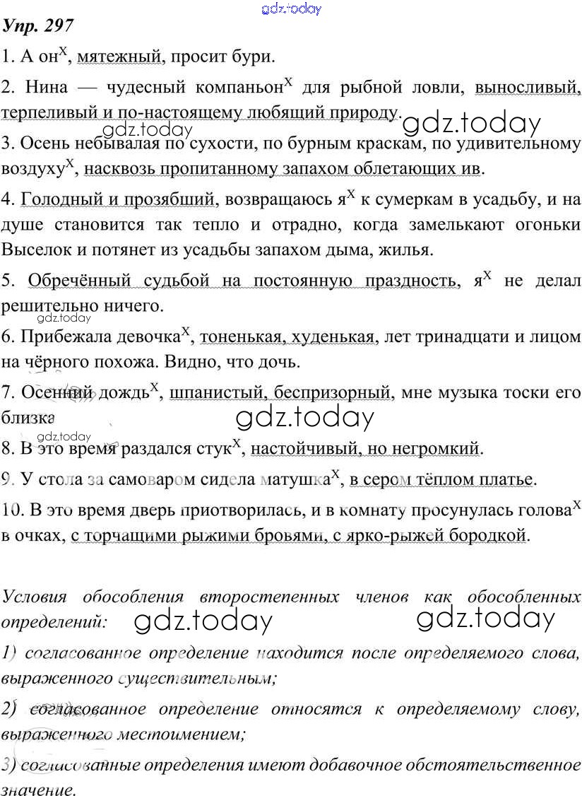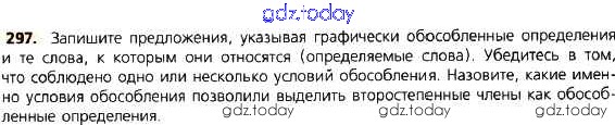 На страницах сайта gdz.today вы найдете учебный и вспомогательный материал, направленный на улучшения знаний школьной программы. ГДЗ - онлайн мир знаний Решение к упражнениям 297 Учебнику по Русскому языку для 8 класса Тростенцова, Ладыженская Просвещение 2014