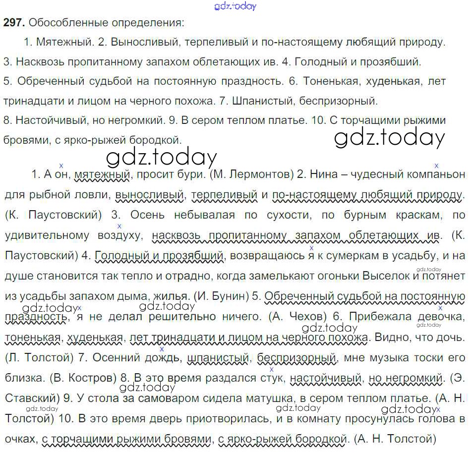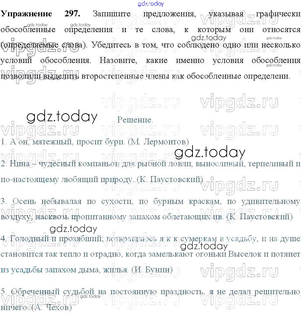 Ответы к Решение к упражнениям 297 Учебнику по Русскому языку для 8 класса Тростенцова, Ладыженская Просвещение 2014