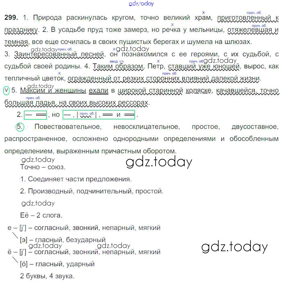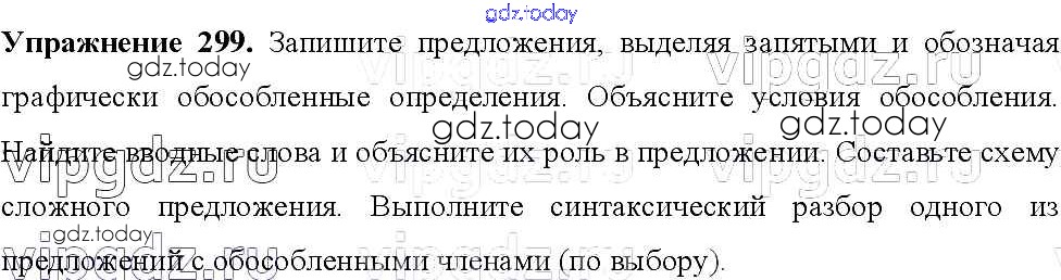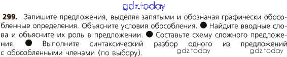 На страницах сайта gdz.today вы найдете учебный и вспомогательный материал, направленный на улучшения знаний школьной программы. ГДЗ - онлайн мир знаний Решение к упражнениям 299 Учебнику по Русскому языку для 8 класса Тростенцова, Ладыженская Просвещение 2014