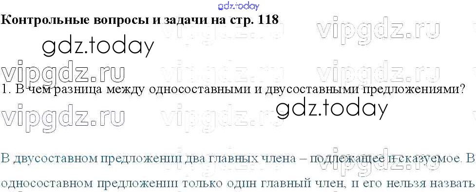 Ответы к Решение к заданиям стр.118 Учебнику по Русскому языку для 8 класса Тростенцова, Ладыженская Просвещение 2014