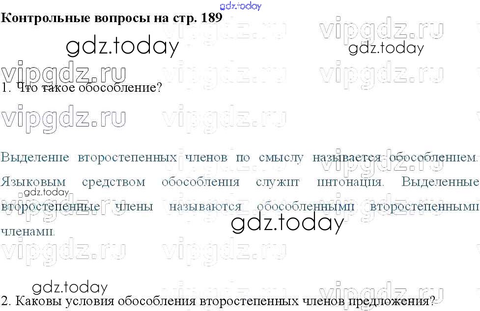 На страницах сайта gdz.today вы найдете учебный и вспомогательный материал, направленный на улучшения знаний школьной программы. ГДЗ - онлайн мир знаний Решение к заданиям стр.189 Учебнику по Русскому языку для 8 класса Тростенцова, Ладыженская Просвещение 2014