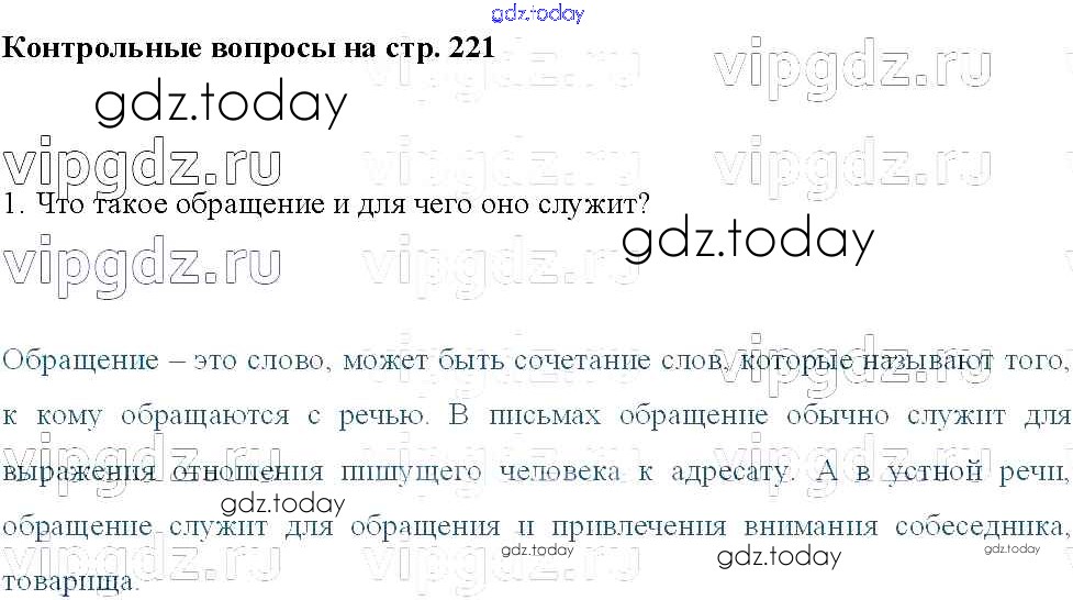 Ответы к Решение к заданиям стр.221 Учебнику по Русскому языку для 8 класса Тростенцова, Ладыженская Просвещение 2014