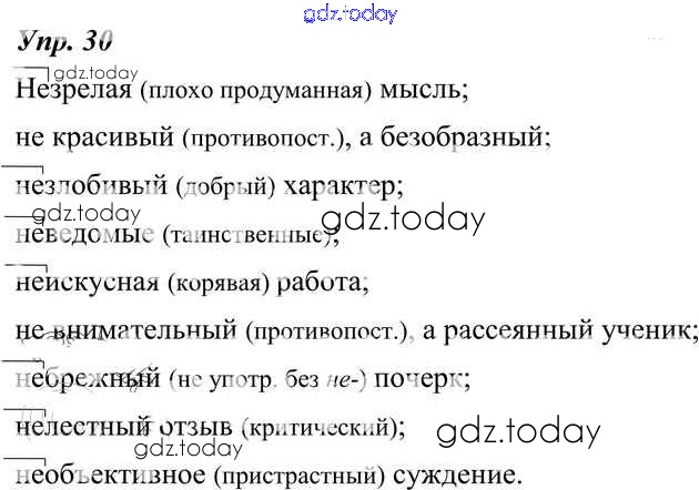 На страницах сайта gdz.today вы найдете учебный и вспомогательный материал, направленный на улучшения знаний школьной программы. ГДЗ - онлайн мир знаний Решение к упражнениям 30 Учебнику по Русскому языку для 8 класса Тростенцова, Ладыженская Просвещение 2014