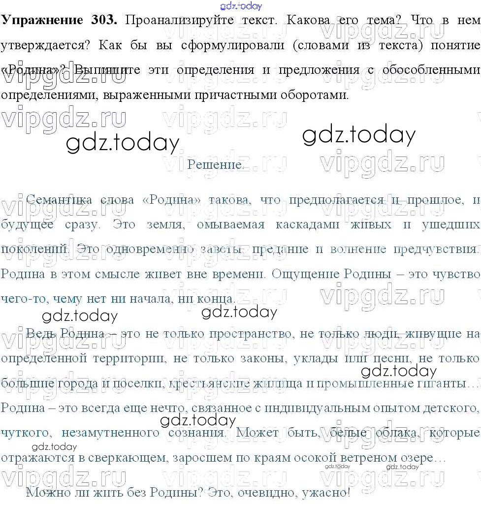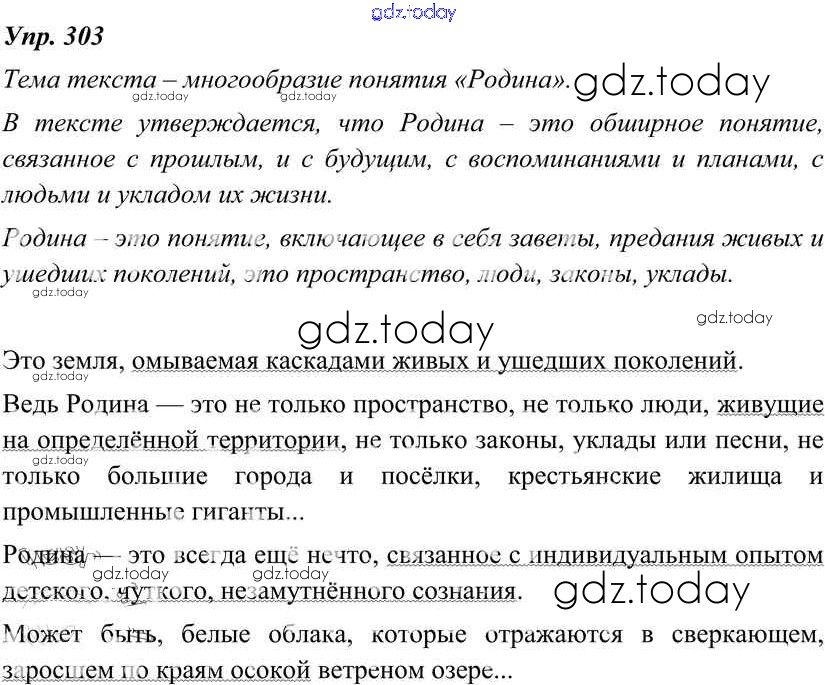 На страницах сайта gdz.today вы найдете учебный и вспомогательный материал, направленный на улучшения знаний школьной программы. ГДЗ - онлайн мир знаний Решение к упражнениям 303 Учебнику по Русскому языку для 8 класса Тростенцова, Ладыженская Просвещение 2014