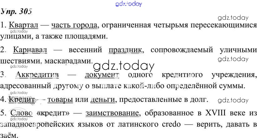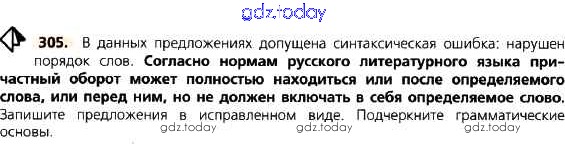 На страницах сайта gdz.today вы найдете учебный и вспомогательный материал, направленный на улучшения знаний школьной программы. ГДЗ - онлайн мир знаний Решение к упражнениям 305 Учебнику по Русскому языку для 8 класса Тростенцова, Ладыженская Просвещение 2014