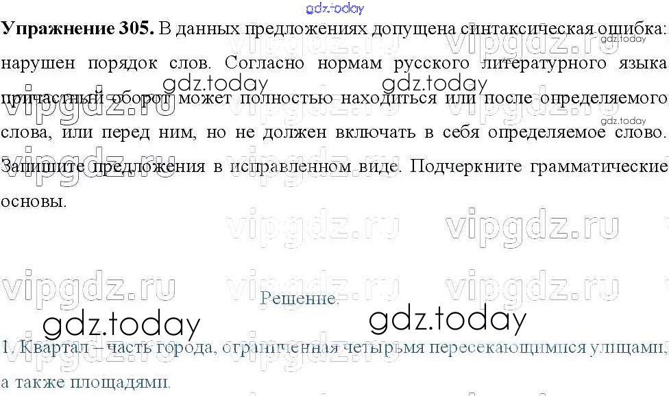 Ответы к Решение к упражнениям 305 Учебнику по Русскому языку для 8 класса Тростенцова, Ладыженская Просвещение 2014