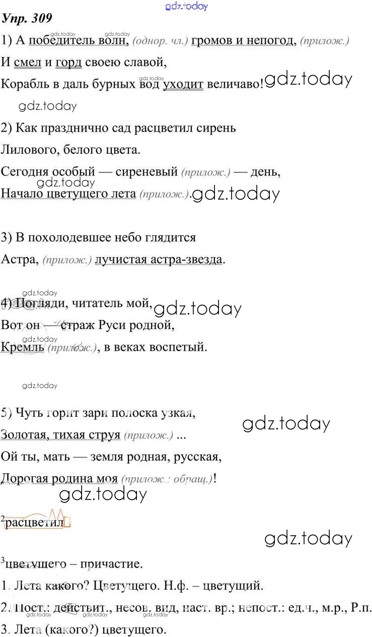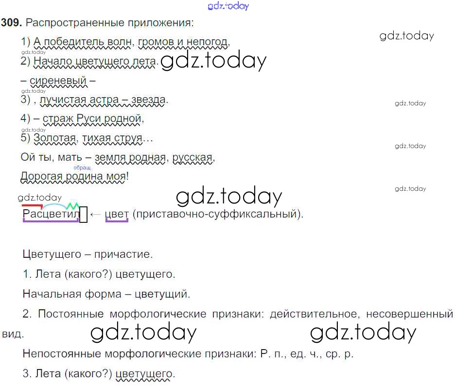 На страницах сайта gdz.today вы найдете учебный и вспомогательный материал, направленный на улучшения знаний школьной программы. ГДЗ - онлайн мир знаний Решение к упражнениям 309 Учебнику по Русскому языку для 8 класса Тростенцова, Ладыженская Просвещение 2014