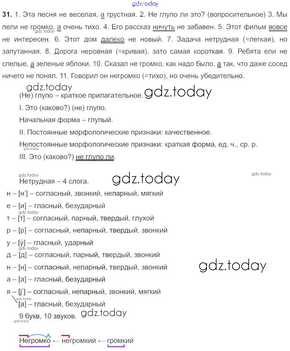 На страницах сайта gdz.today вы найдете учебный и вспомогательный материал, направленный на улучшения знаний школьной программы. ГДЗ - онлайн мир знаний Решение к упражнениям 31 Учебнику по Русскому языку для 8 класса Тростенцова, Ладыженская Просвещение 2014