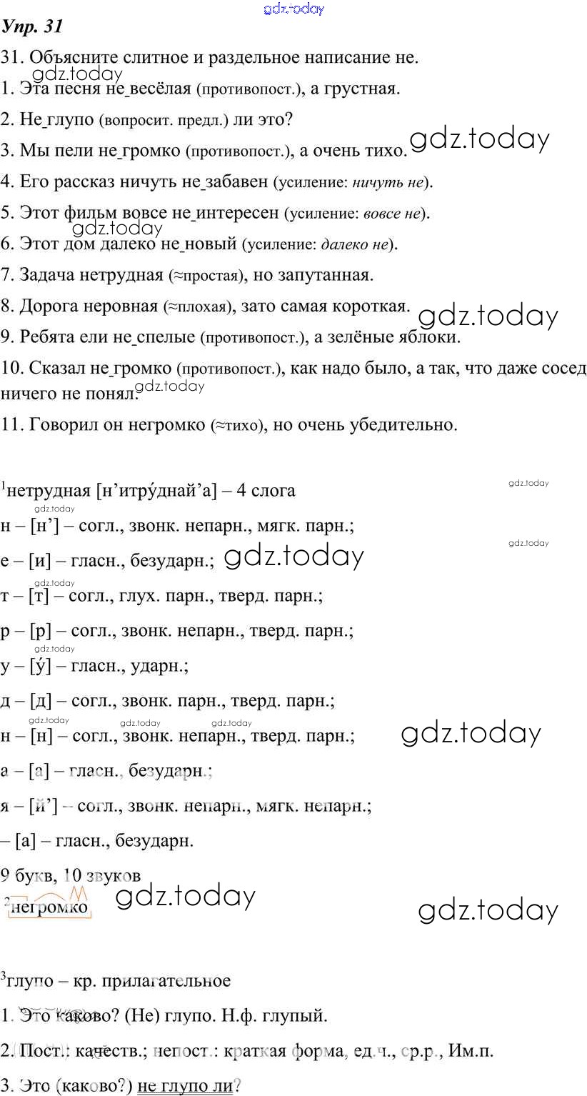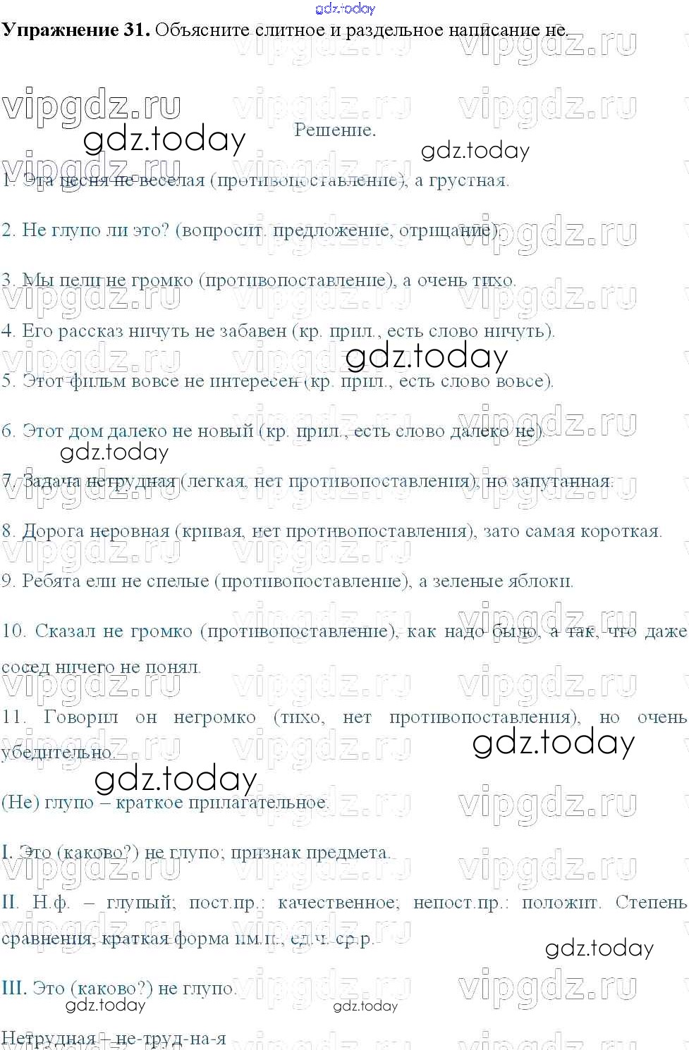 Ответы к Решение к упражнениям 31 Учебнику по Русскому языку для 8 класса Тростенцова, Ладыженская Просвещение 2014