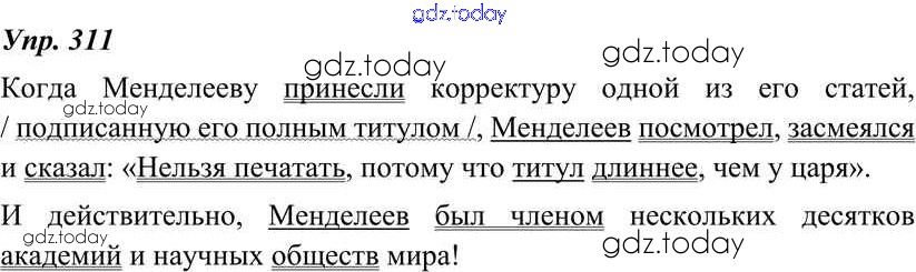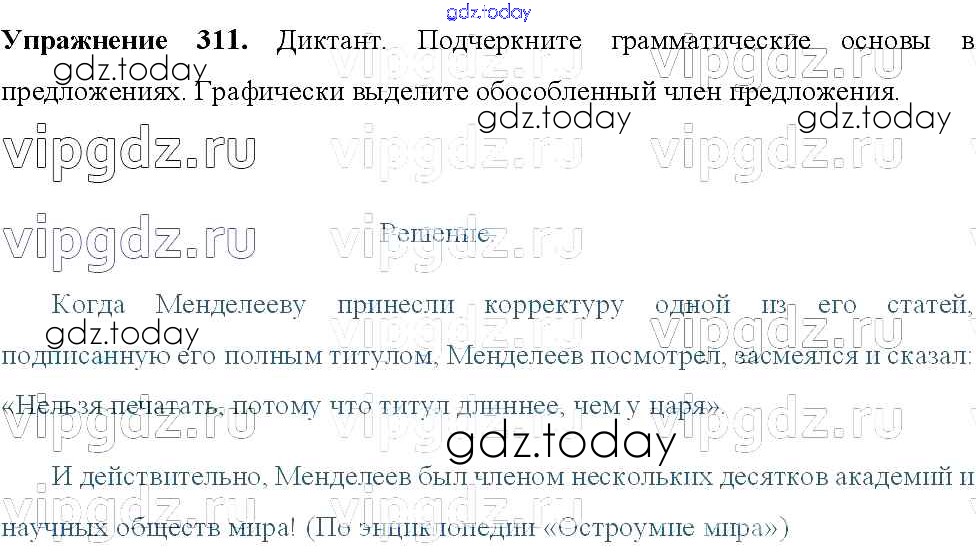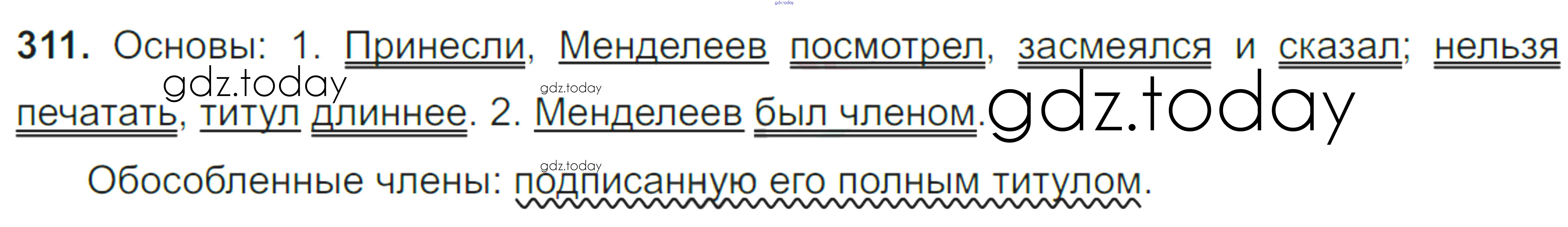 На страницах сайта gdz.today вы найдете учебный и вспомогательный материал, направленный на улучшения знаний школьной программы. ГДЗ - онлайн мир знаний Решение к упражнениям 311 Учебнику по Русскому языку для 8 класса Тростенцова, Ладыженская Просвещение 2014