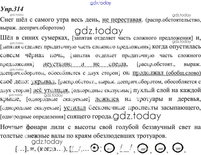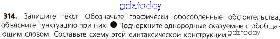На страницах сайта gdz.today вы найдете учебный и вспомогательный материал, направленный на улучшения знаний школьной программы. ГДЗ - онлайн мир знаний Решение к упражнениям 314 Учебнику по Русскому языку для 8 класса Тростенцова, Ладыженская Просвещение 2014