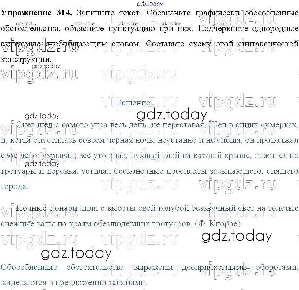 Ответы к Решение к упражнениям 314 Учебнику по Русскому языку для 8 класса Тростенцова, Ладыженская Просвещение 2014