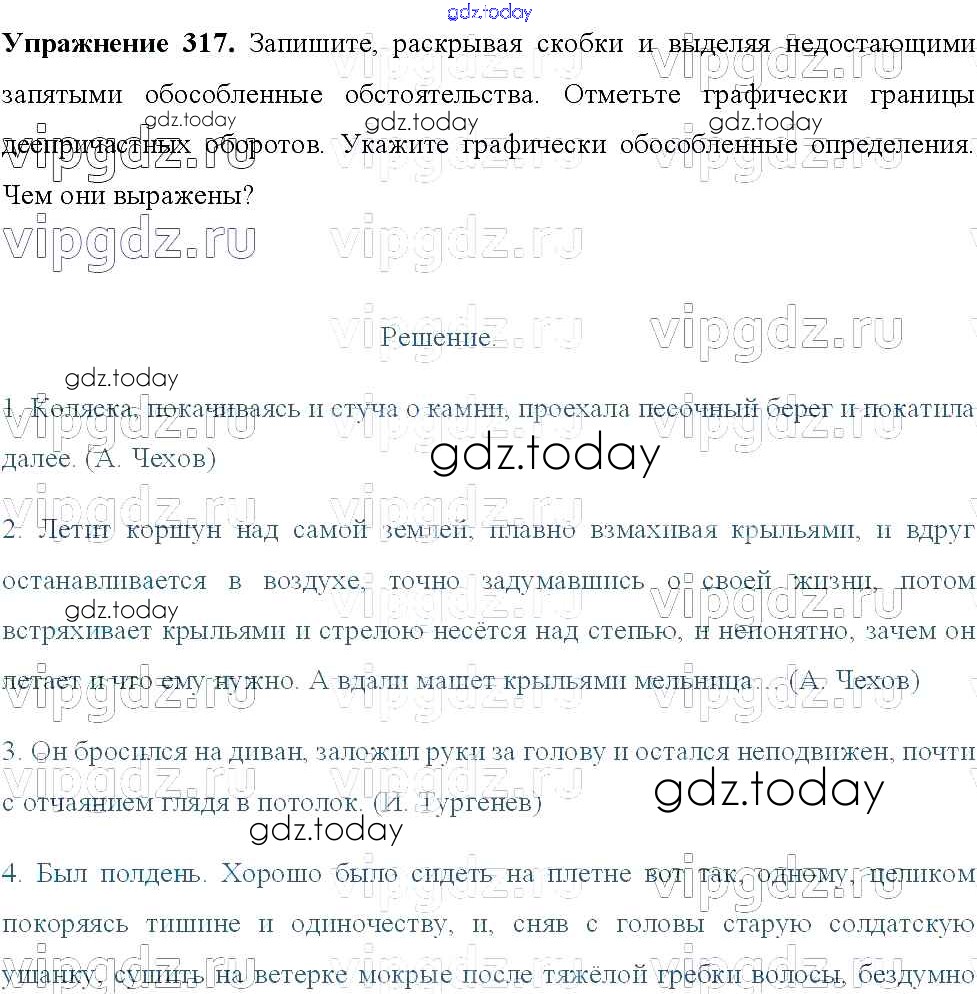 На страницах сайта gdz.today вы найдете учебный и вспомогательный материал, направленный на улучшения знаний школьной программы. ГДЗ - онлайн мир знаний Решение к упражнениям 317 Учебнику по Русскому языку для 8 класса Тростенцова, Ладыженская Просвещение 2014