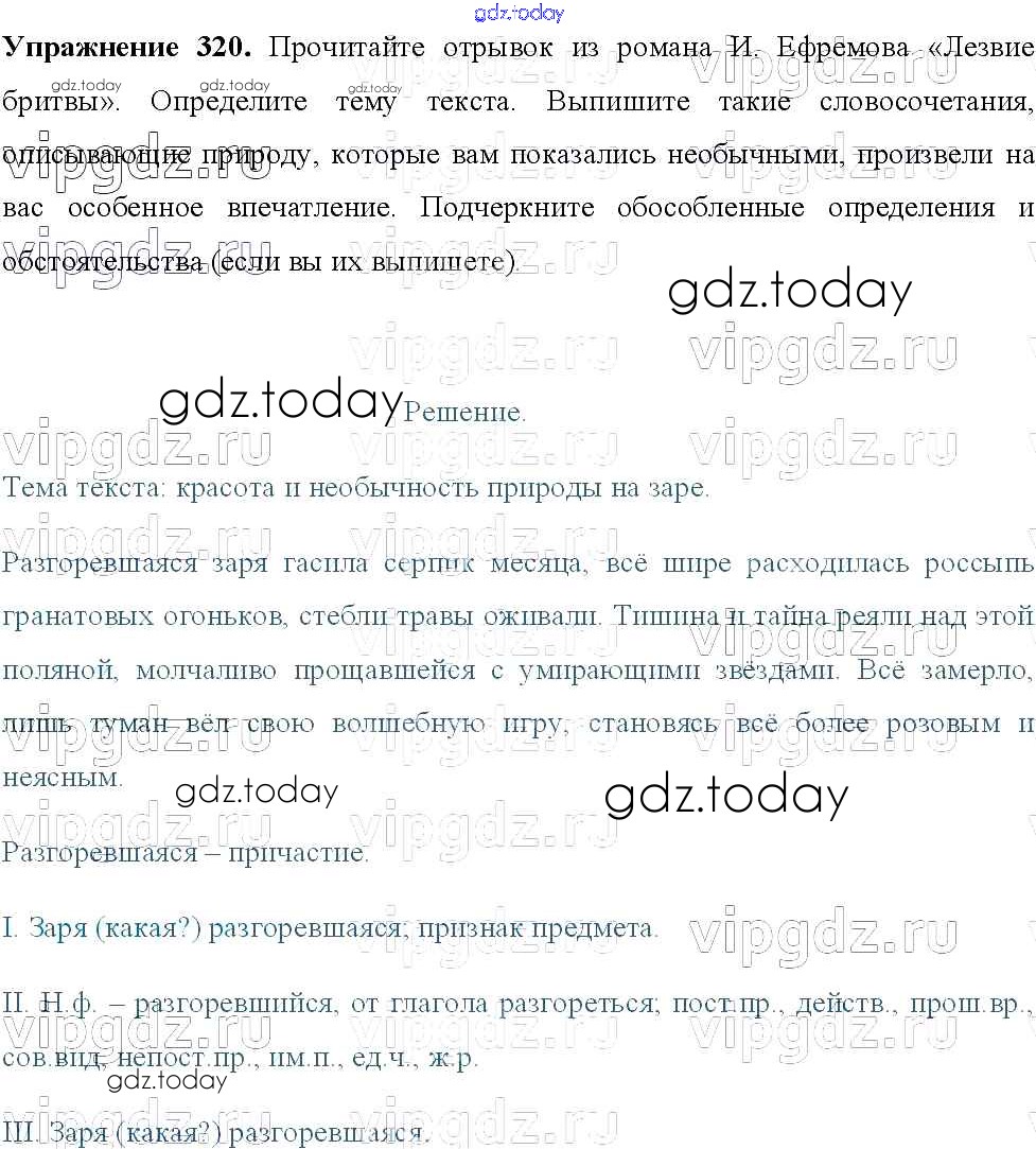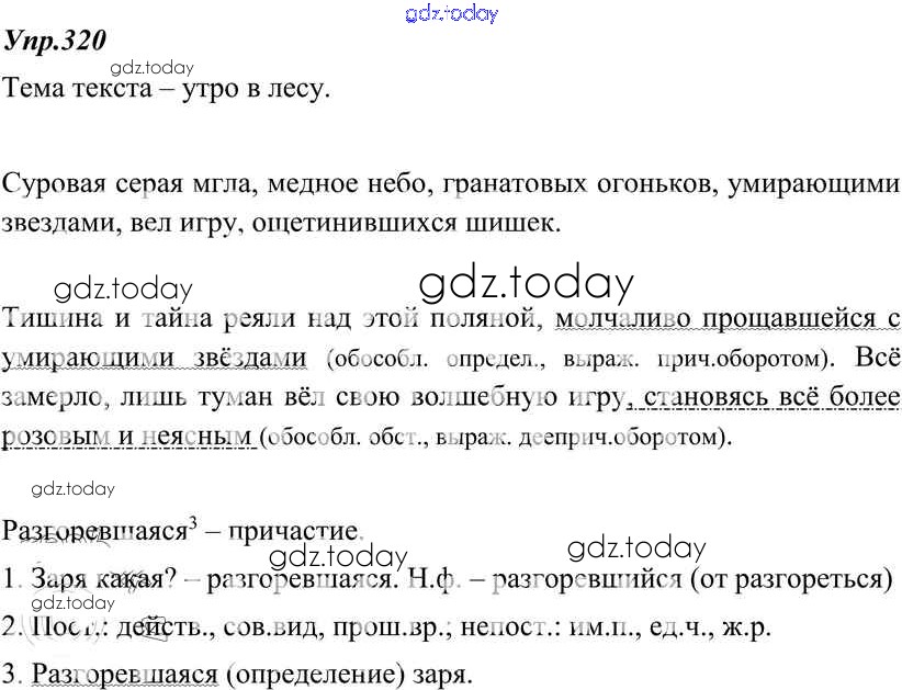На страницах сайта gdz.today вы найдете учебный и вспомогательный материал, направленный на улучшения знаний школьной программы. ГДЗ - онлайн мир знаний Решение к упражнениям 320 Учебнику по Русскому языку для 8 класса Тростенцова, Ладыженская Просвещение 2014