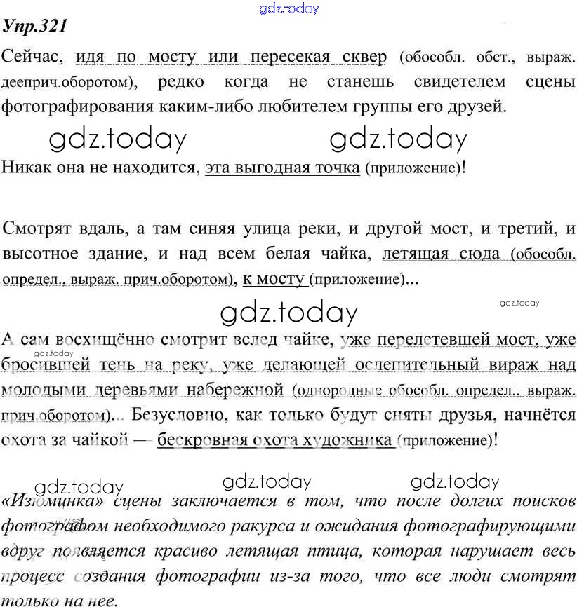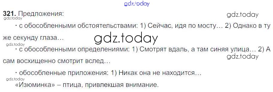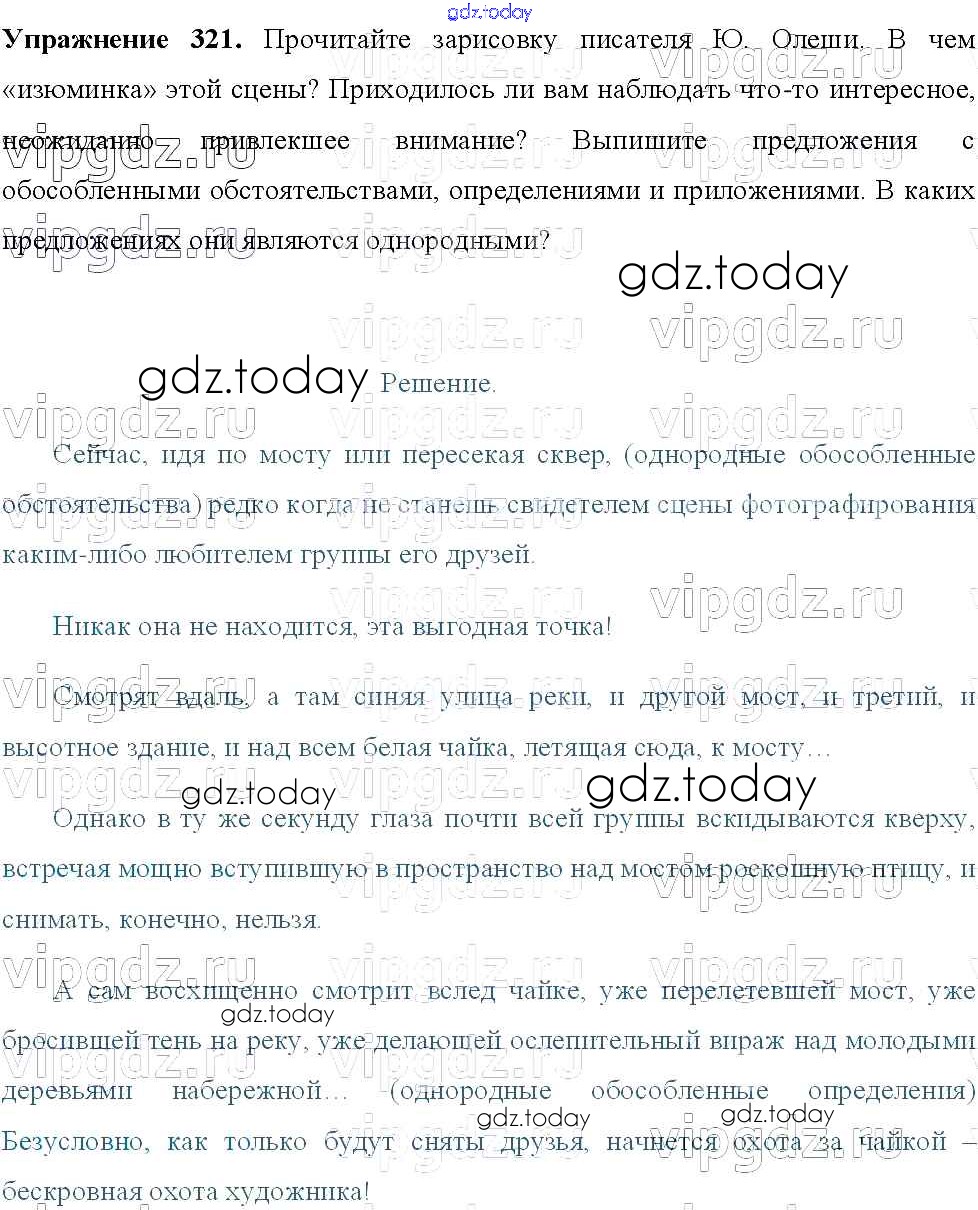 На страницах сайта gdz.today вы найдете учебный и вспомогательный материал, направленный на улучшения знаний школьной программы. ГДЗ - онлайн мир знаний Решение к упражнениям 321 Учебнику по Русскому языку для 8 класса Тростенцова, Ладыженская Просвещение 2014