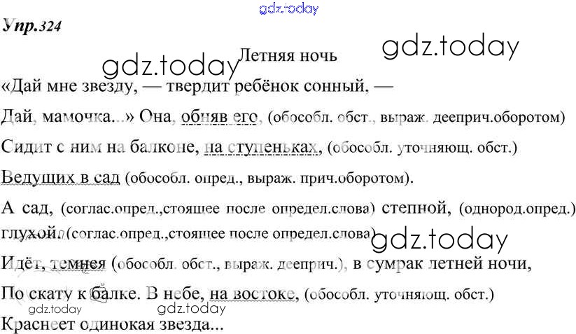 На страницах сайта gdz.today вы найдете учебный и вспомогательный материал, направленный на улучшения знаний школьной программы. ГДЗ - онлайн мир знаний Решение к упражнениям 324 Учебнику по Русскому языку для 8 класса Тростенцова, Ладыженская Просвещение 2014