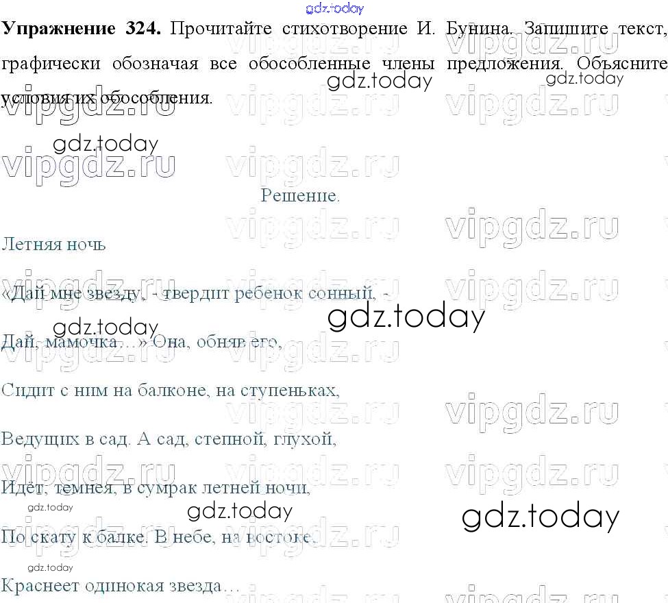 Ответы к Решение к упражнениям 324 Учебнику по Русскому языку для 8 класса Тростенцова, Ладыженская Просвещение 2014