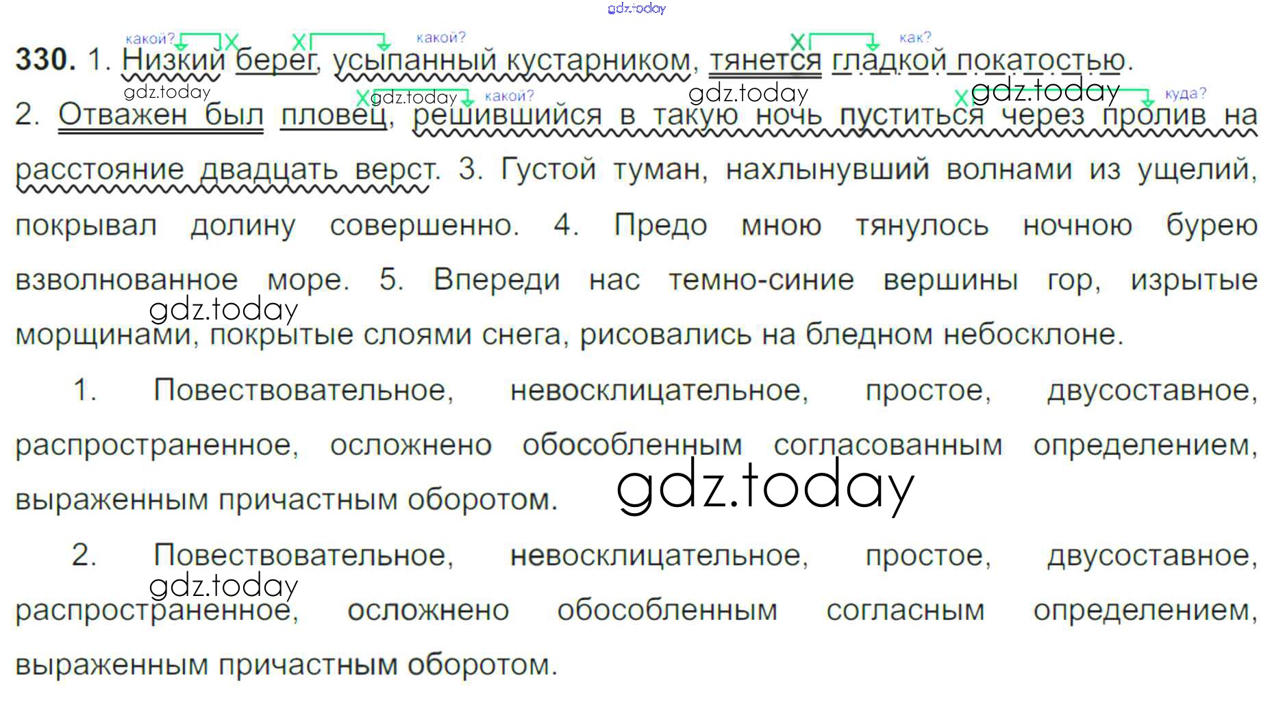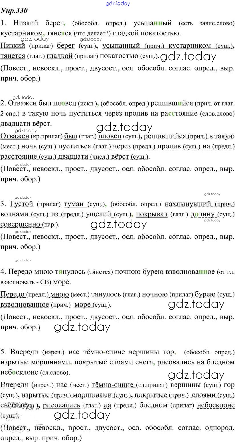 На страницах сайта gdz.today вы найдете учебный и вспомогательный материал, направленный на улучшения знаний школьной программы. ГДЗ - онлайн мир знаний Решение к упражнениям 330 Учебнику по Русскому языку для 8 класса Тростенцова, Ладыженская Просвещение 2014