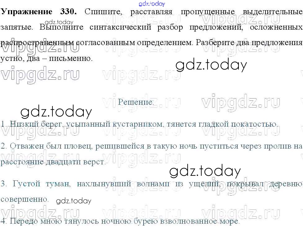 Ответы к Решение к упражнениям 330 Учебнику по Русскому языку для 8 класса Тростенцова, Ладыженская Просвещение 2014