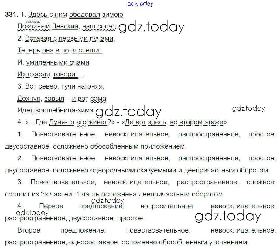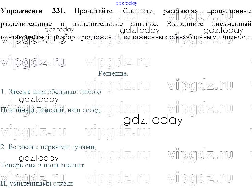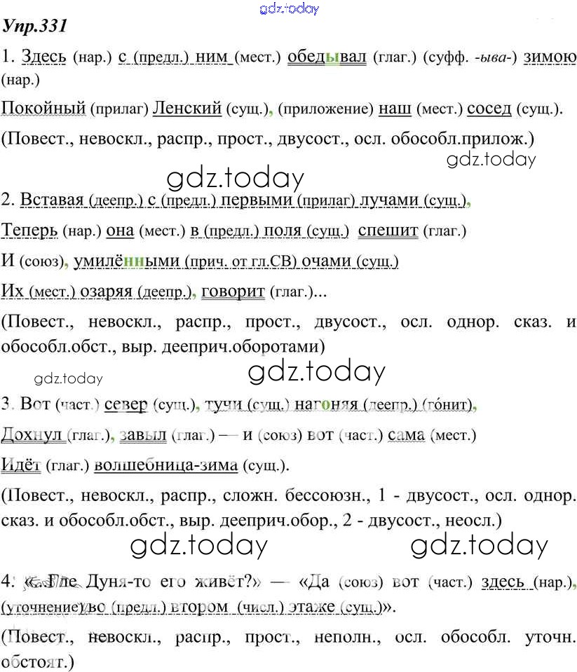 Ответы к Решение к упражнениям 331 Учебнику по Русскому языку для 8 класса Тростенцова, Ладыженская Просвещение 2014