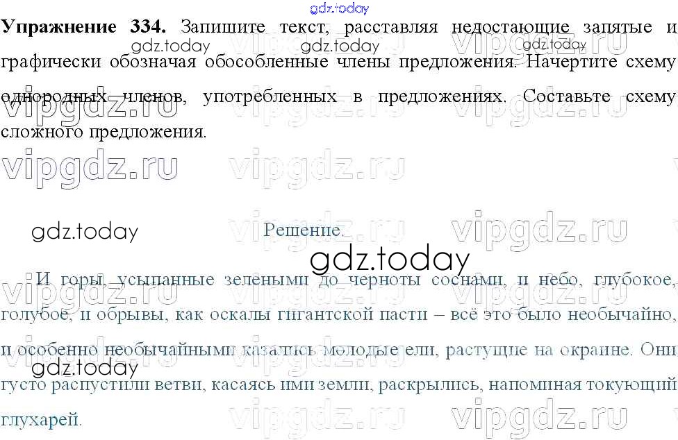 Ответы к Решение к упражнениям 334 Учебнику по Русскому языку для 8 класса Тростенцова, Ладыженская Просвещение 2014