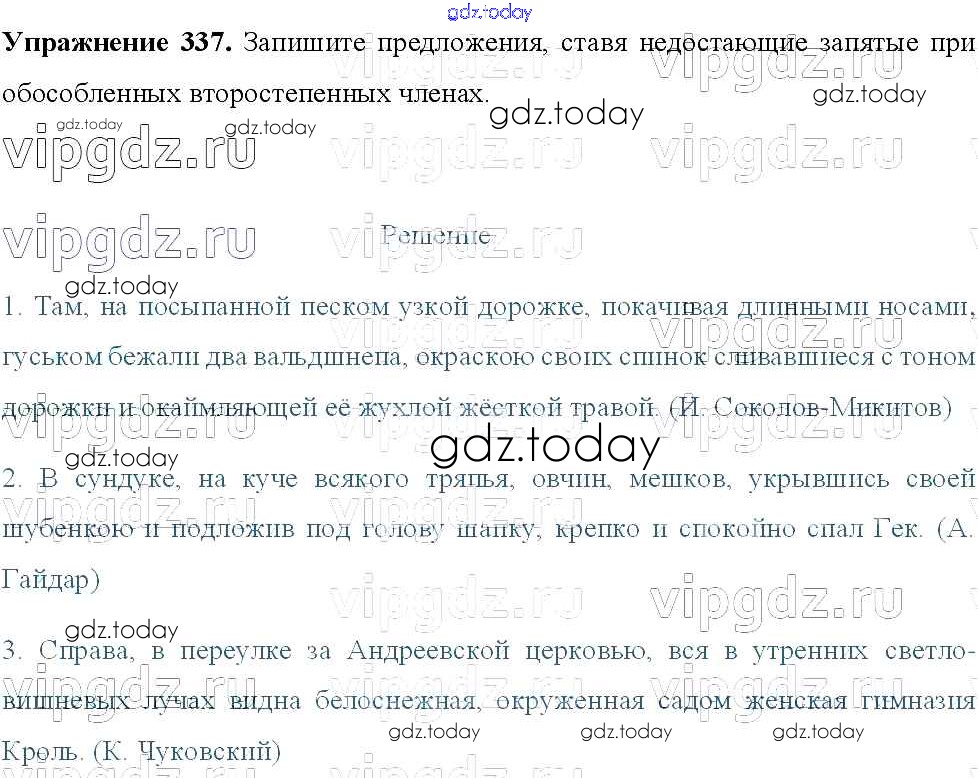 Ответы к Решение к упражнениям 337 Учебнику по Русскому языку для 8 класса Тростенцова, Ладыженская Просвещение 2014