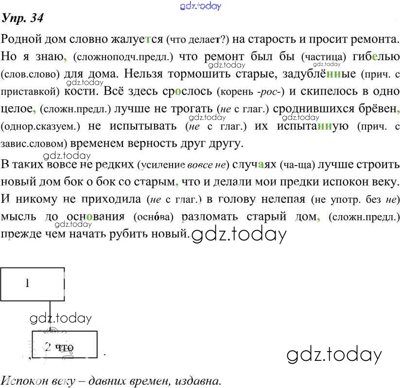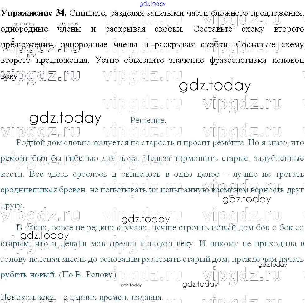Ответы к Решение к упражнениям 34 Учебнику по Русскому языку для 8 класса Тростенцова, Ладыженская Просвещение 2014