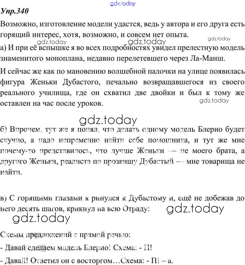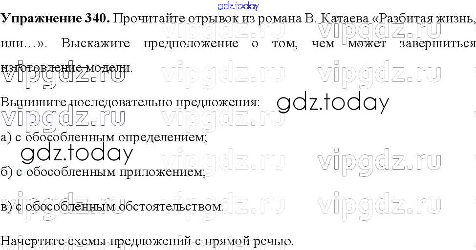 Ответы к Решение к упражнениям 340 Учебнику по Русскому языку для 8 класса Тростенцова, Ладыженская Просвещение 2014