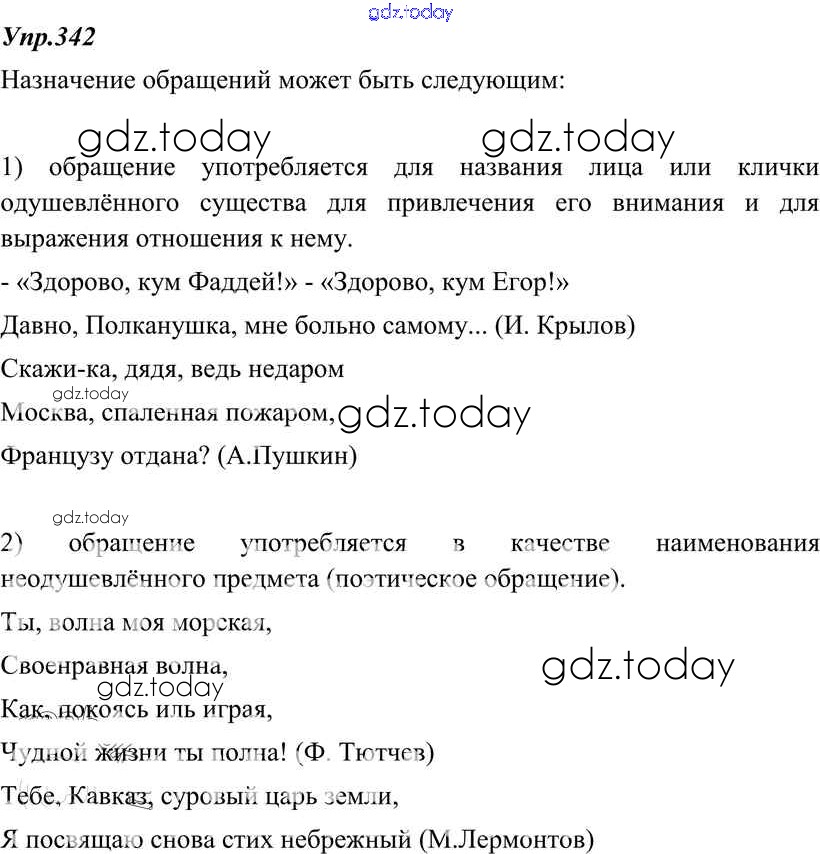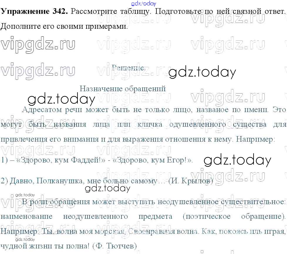 Ответы к Решение к упражнениям 342 Учебнику по Русскому языку для 8 класса Тростенцова, Ладыженская Просвещение 2014