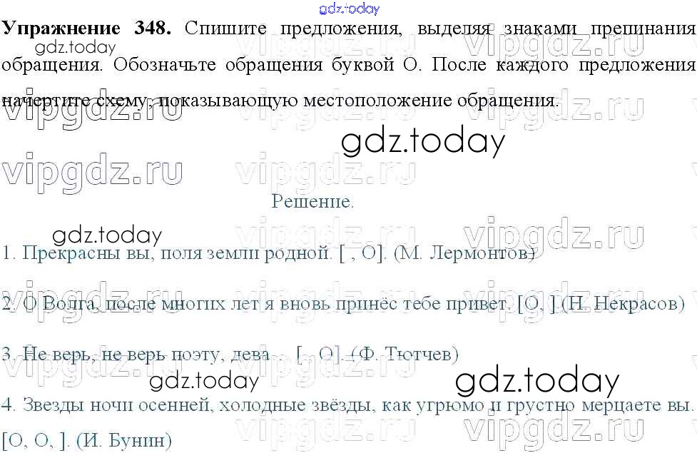На страницах сайта gdz.today вы найдете учебный и вспомогательный материал, направленный на улучшения знаний школьной программы. ГДЗ - онлайн мир знаний Решение к упражнениям 348 Учебнику по Русскому языку для 8 класса Тростенцова, Ладыженская Просвещение 2014