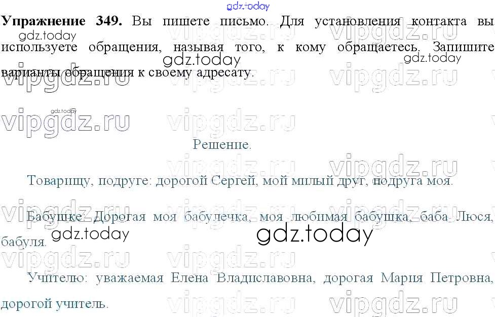 На страницах сайта gdz.today вы найдете учебный и вспомогательный материал, направленный на улучшения знаний школьной программы. ГДЗ - онлайн мир знаний Решение к упражнениям 349 Учебнику по Русскому языку для 8 класса Тростенцова, Ладыженская Просвещение 2014