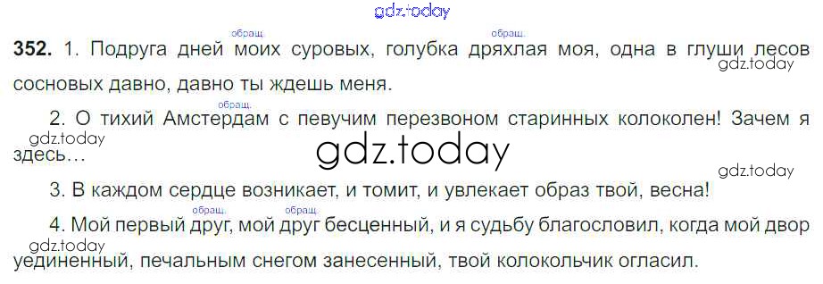 Ответы к Решение к упражнениям 352 Учебнику по Русскому языку для 8 класса Тростенцова, Ладыженская Просвещение 2014