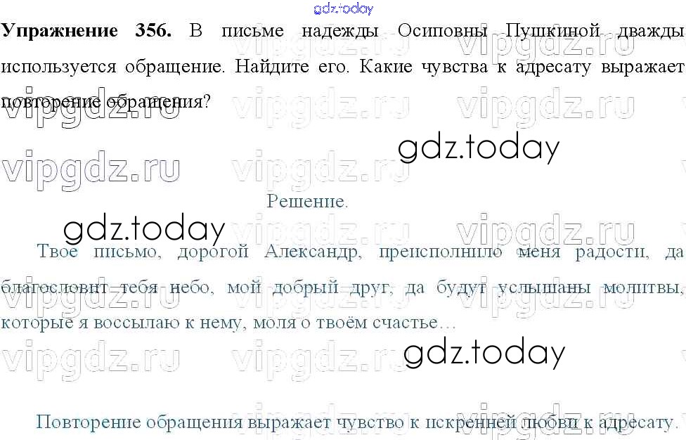 Ответы к Решение к упражнениям 356 Учебнику по Русскому языку для 8 класса Тростенцова, Ладыженская Просвещение 2014
