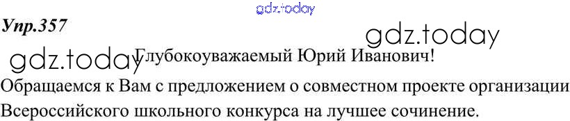На страницах сайта gdz.today вы найдете учебный и вспомогательный материал, направленный на улучшения знаний школьной программы. ГДЗ - онлайн мир знаний Решение к упражнениям 357 Учебнику по Русскому языку для 8 класса Тростенцова, Ладыженская Просвещение 2014