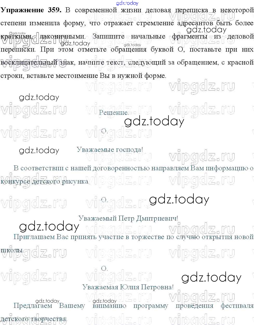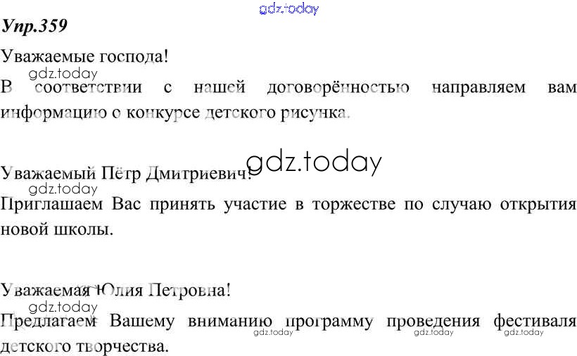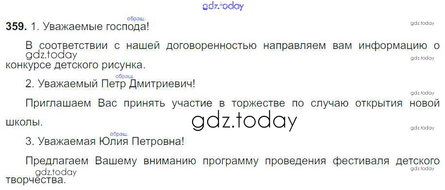 На страницах сайта gdz.today вы найдете учебный и вспомогательный материал, направленный на улучшения знаний школьной программы. ГДЗ - онлайн мир знаний Решение к упражнениям 359 Учебнику по Русскому языку для 8 класса Тростенцова, Ладыженская Просвещение 2014