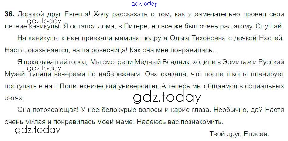 На страницах сайта gdz.today вы найдете учебный и вспомогательный материал, направленный на улучшения знаний школьной программы. ГДЗ - онлайн мир знаний Решение к упражнениям 36 Учебнику по Русскому языку для 8 класса Тростенцова, Ладыженская Просвещение 2014