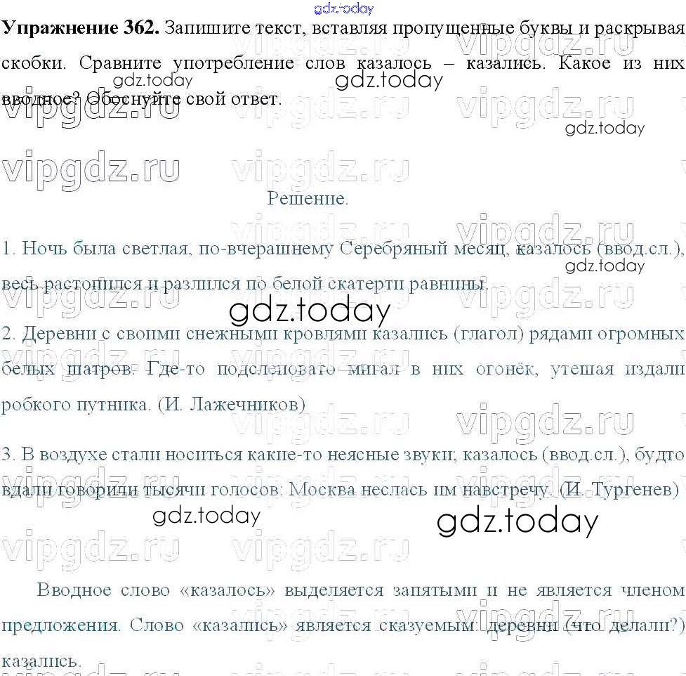 Ответы к Решение к упражнениям 362 Учебнику по Русскому языку для 8 класса Тростенцова, Ладыженская Просвещение 2014