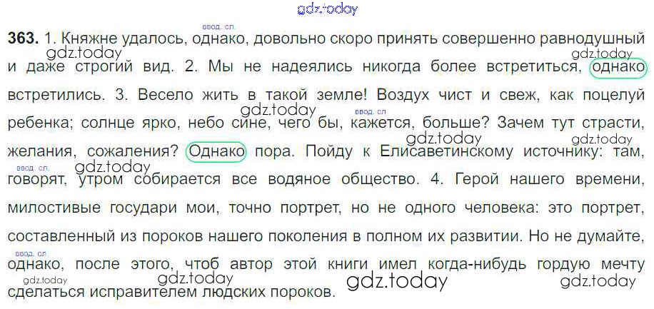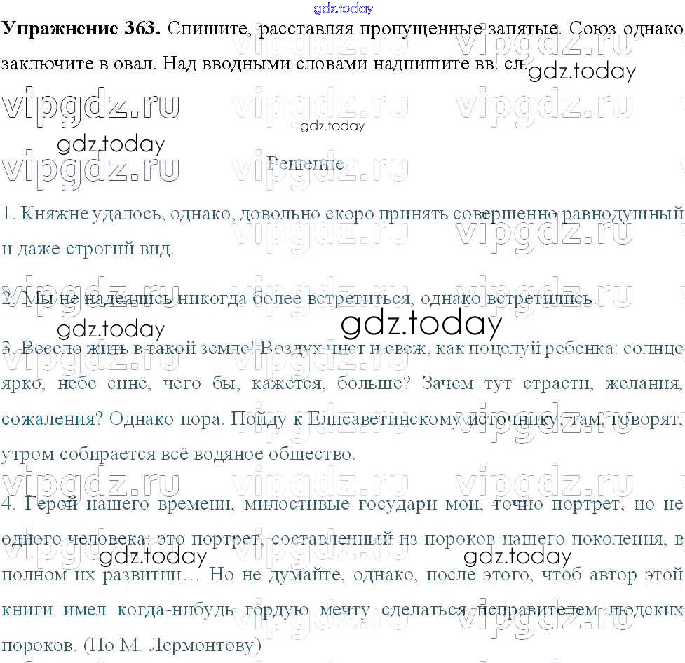 На страницах сайта gdz.today вы найдете учебный и вспомогательный материал, направленный на улучшения знаний школьной программы. ГДЗ - онлайн мир знаний Решение к упражнениям 363 Учебнику по Русскому языку для 8 класса Тростенцова, Ладыженская Просвещение 2014