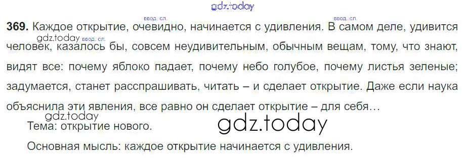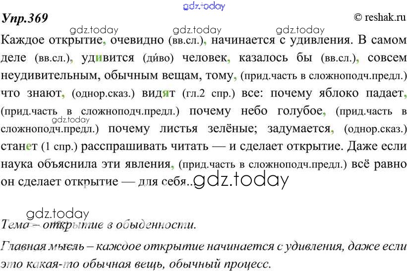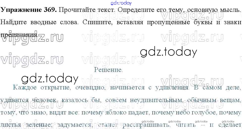На страницах сайта gdz.today вы найдете учебный и вспомогательный материал, направленный на улучшения знаний школьной программы. ГДЗ - онлайн мир знаний Решение к упражнениям 369 Учебнику по Русскому языку для 8 класса Тростенцова, Ладыженская Просвещение 2014