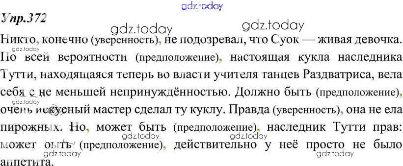 На страницах сайта gdz.today вы найдете учебный и вспомогательный материал, направленный на улучшения знаний школьной программы. ГДЗ - онлайн мир знаний Решение к упражнениям 372 Учебнику по Русскому языку для 8 класса Тростенцова, Ладыженская Просвещение 2014