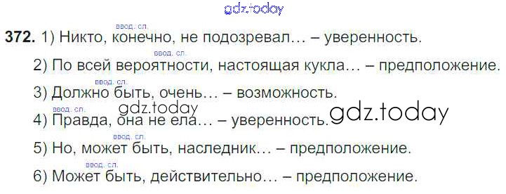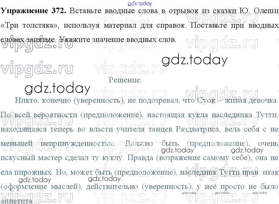 Ответы к Решение к упражнениям 372 Учебнику по Русскому языку для 8 класса Тростенцова, Ладыженская Просвещение 2014