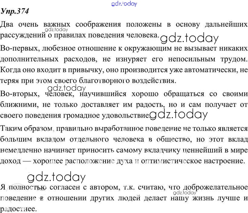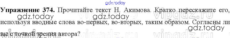 На страницах сайта gdz.today вы найдете учебный и вспомогательный материал, направленный на улучшения знаний школьной программы. ГДЗ - онлайн мир знаний Решение к упражнениям 374 Учебнику по Русскому языку для 8 класса Тростенцова, Ладыженская Просвещение 2014