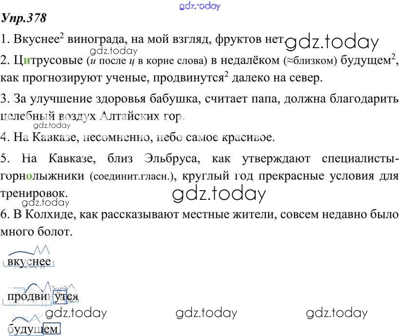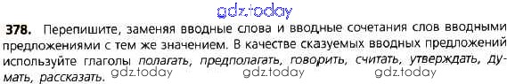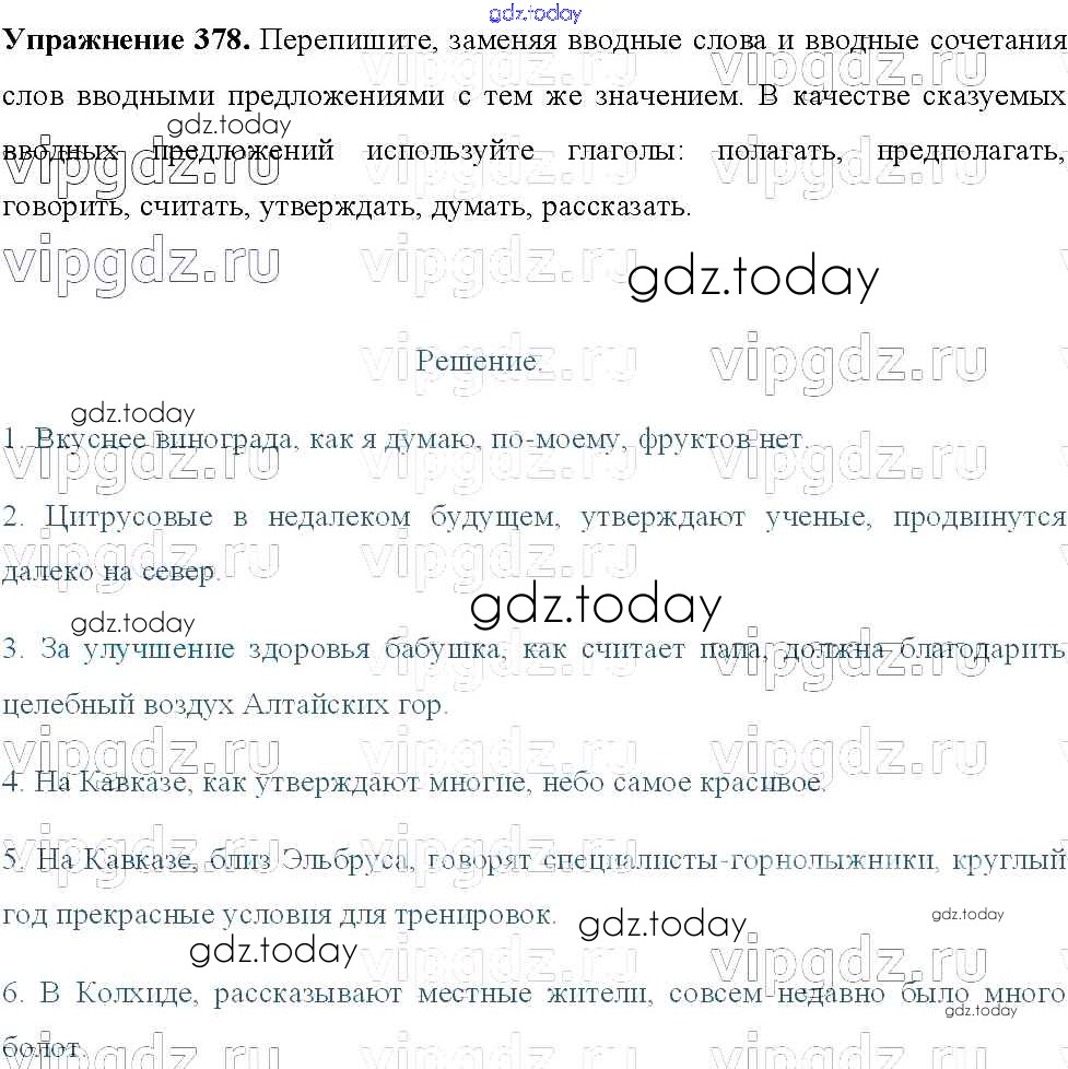 На страницах сайта gdz.today вы найдете учебный и вспомогательный материал, направленный на улучшения знаний школьной программы. ГДЗ - онлайн мир знаний Решение к упражнениям 378 Учебнику по Русскому языку для 8 класса Тростенцова, Ладыженская Просвещение 2014