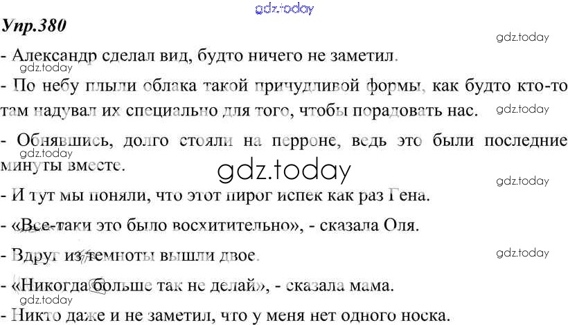 На страницах сайта gdz.today вы найдете учебный и вспомогательный материал, направленный на улучшения знаний школьной программы. ГДЗ - онлайн мир знаний Решение к упражнениям 380 Учебнику по Русскому языку для 8 класса Тростенцова, Ладыженская Просвещение 2014