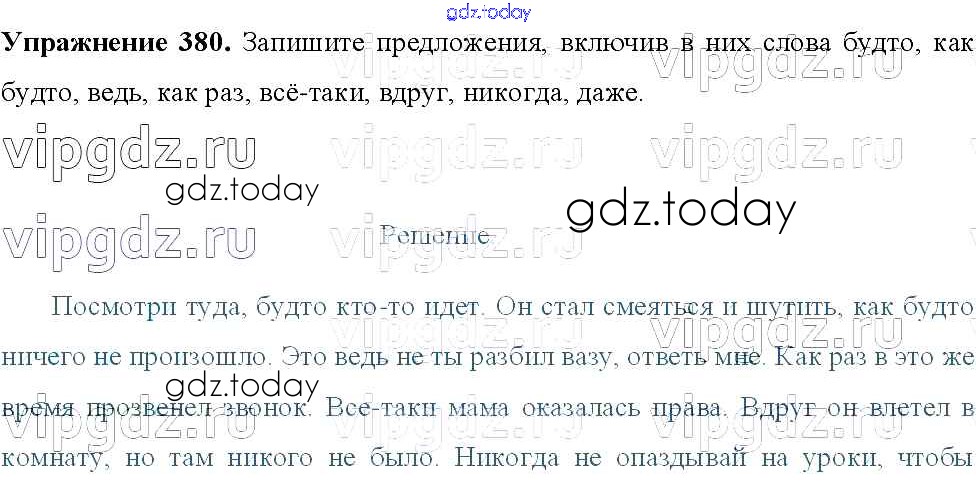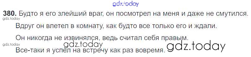 Ответы к Решение к упражнениям 380 Учебнику по Русскому языку для 8 класса Тростенцова, Ладыженская Просвещение 2014